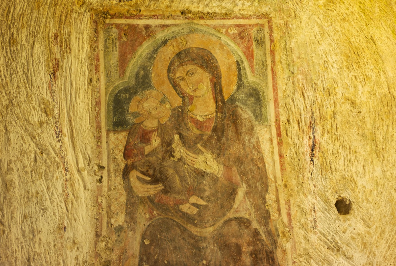 Next to the church is a crypt with many old frescos, this is one of the Madonna.